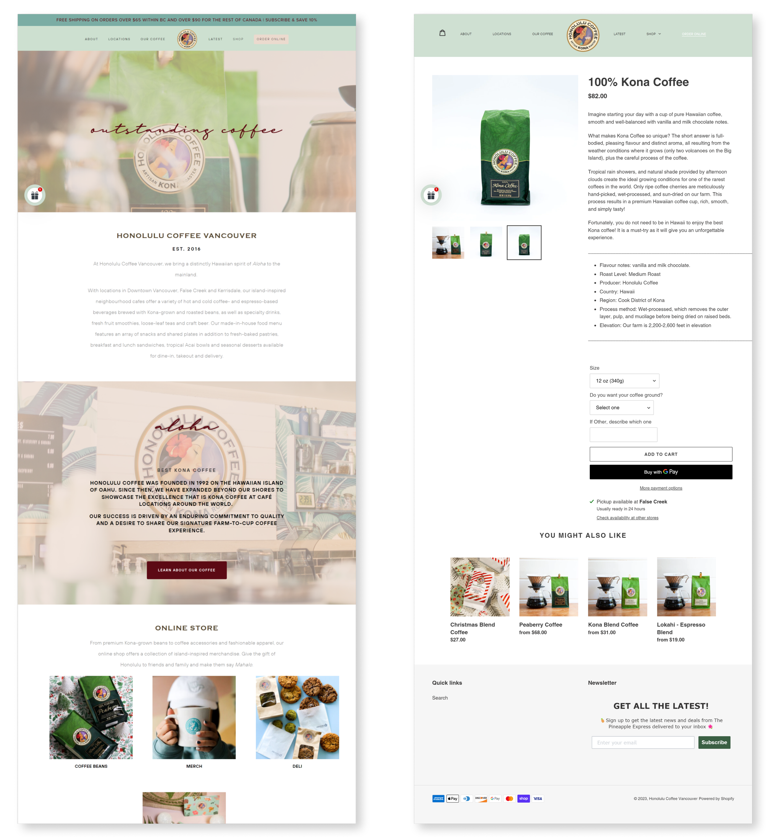 Honolulu Coffee Vancouver - Redesigning the overall visual and user experience of Honolulu Coffee Vancouver website.